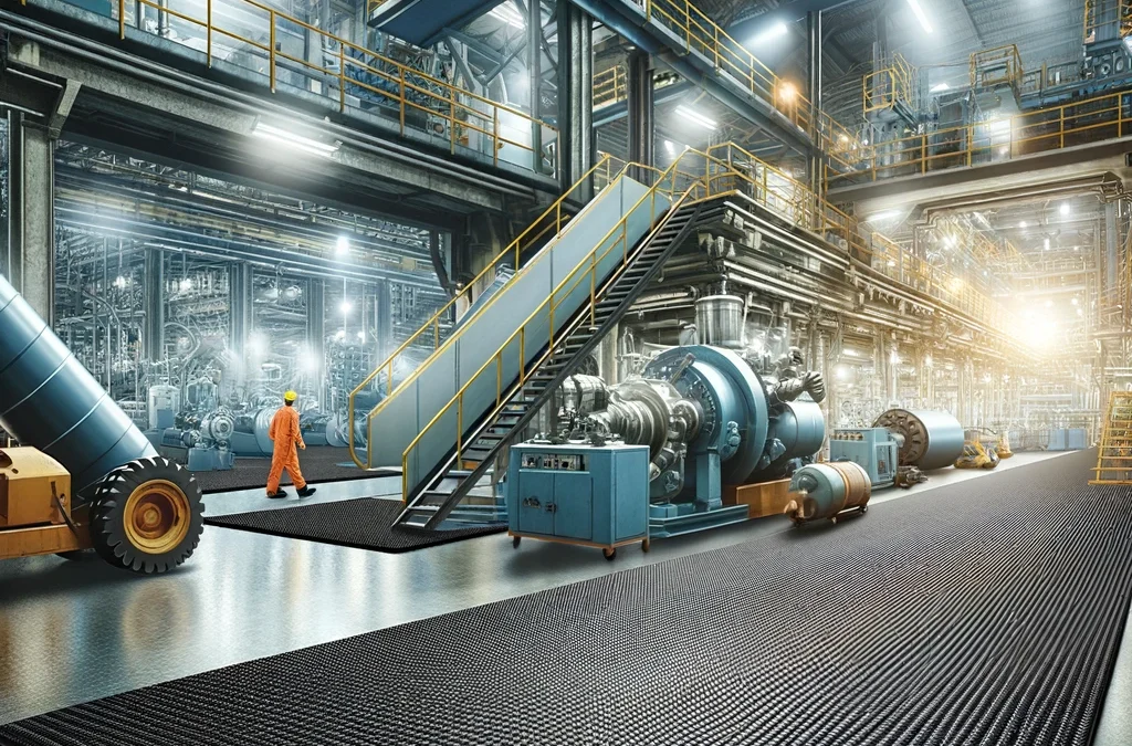 In manufacturing settings, rubber mats enhance safety and productivity by reducing accident risks and fatigue.